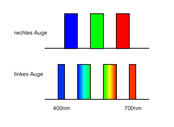 Image 10: Color separation with interference filter method according to Infitec®. In both fields all 3 basic colors are present.