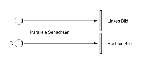 Side by side arranged stereo images can directly be look to without any additional aids up to an image size of about 6 cm. The DGS uses this method within its stereo journal and also on this website. Hereby the eyes look in parallel orientation to infinity, but must focus to vicinity. A small guide to learn this method can be found here.